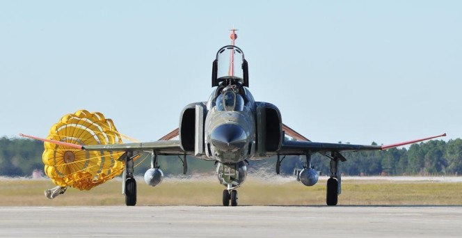 Although very similar to the US Navy’s F-4B, it included some slight differences to make the aircraft suitable for air force use. Some of the items are: 1. The probe-and-drogue method of in-flight refuelling favoured by the US Navy was discarded in favour of the standard USAF boom’ method. 2. Full flying controls and instrumentation were duplicated in the rear cockpit. 3. In order to allow use from un-sophisticated airfields an anti-skid braking system was fitted, which included the use of thicker main-wheels. 4. The USAF version could carry a greater variety of external wea¬ponry.