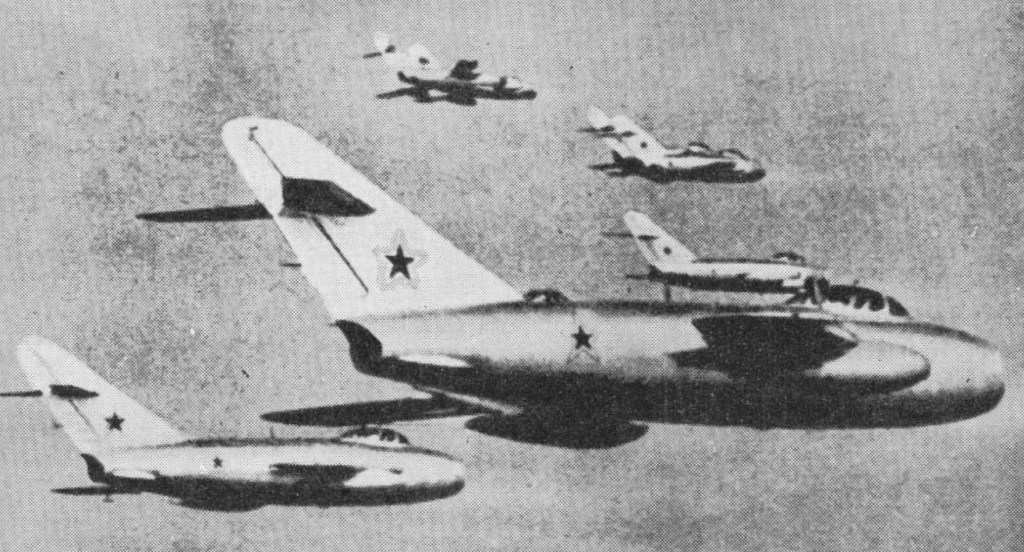 On 10 March 1953, five days after a Polish pilot had defected with his MiG-15 to the Danish island of Bornholm, two Czechoslovakian MiGs attacked two American F-84G Thunderjets over Regensburg in Bavaria. One of the Thunderjets was shot down by the 23mm and 37mm cannon of one of the MiGs. The pilot ejected safely over Czechoslovakian territory.