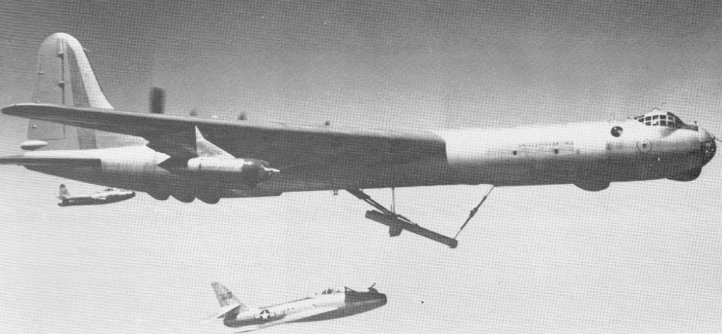 Twenty five RF 84Fs were modified for parasite duty. On a typical mission the mother ship B 36 would depart from Fairchild Air Force Base, Spokane, Washington to be joined in the air by an RF 84K (as the parasite Thunderflashes were designated) from Moses Lake Air Force Base. The fighter would be hoisted into the B 36’s bomb bay.