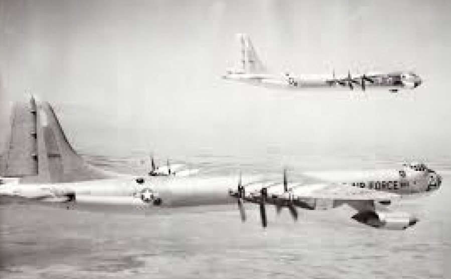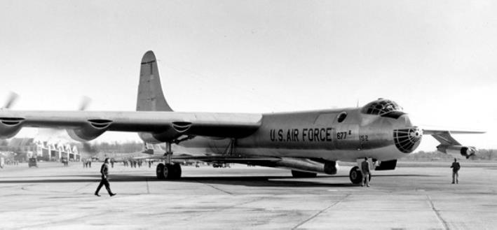 From 1950 the over target height and speed were boosted by adding four 2360 kg (5200 lb) thrust J47 jet engines in under slung pods to boost performance; with the six piston engines also uprated to 3800 hp each. Missions could last up to 50 hours without using the inflight refuelling capability. Complete wings were based in the UK, Morocco, Guam and other areas, as well as in the USA until February 1959. No missions were flown ‘in anger’.