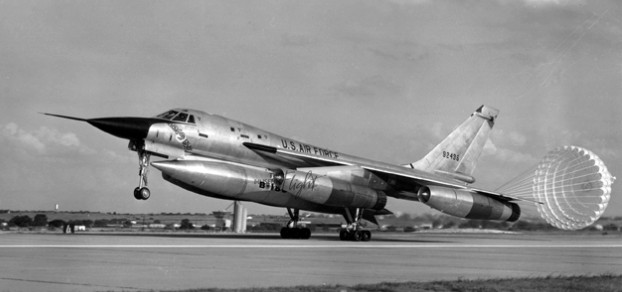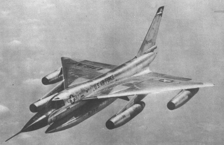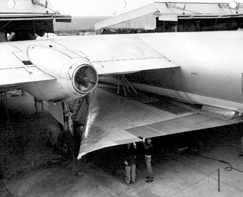 Since the airframe was the subject of testing the XB-58 did not have the engines attached and the vertical fin assembly was left off, as well.