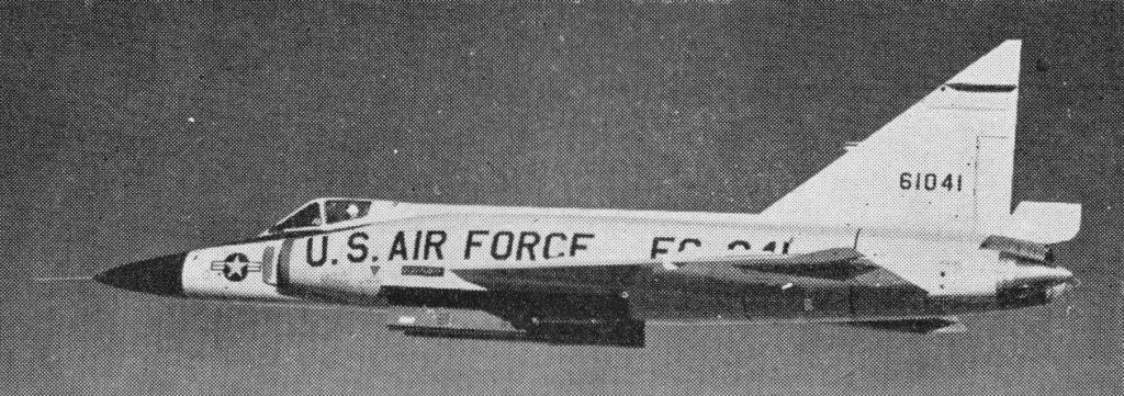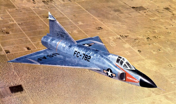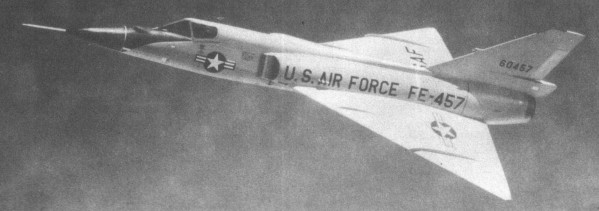 The YF-102 was not a success, proving unable to maintan supersonic speeds in level flight. The fuselage was completely redesigned into a ‘coke bottle’ shape using the area rule concept, and a more powerful engine installed. The indented fuselage or ‘area rule’ configuration was developed by NACA’s Richard Whitcomb was introduced in the much-altered YF-102A, which was assembled in 117 days.
