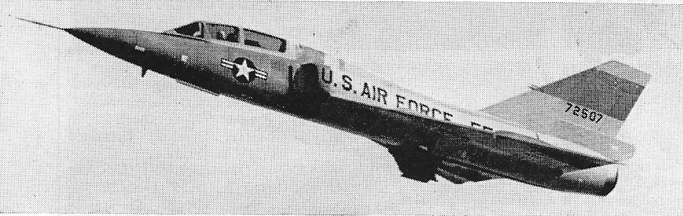 The first flight of the F-106B two-seat trainer was made in April 1958.