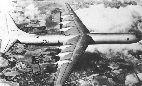 The first intercontinental bomber, the Convair B-36 originated from a US Army Air Force specification issued on 11 April 1941 which called for an aircraft with ability to carry a maximum bombload of 72,000 lb / 32659kg and to deliver 10,000-lb / 4536kg of bombs on European targets from bases in the United States. A radius of 5000 miles / 8047 km. An unrefuelled range of 16093km was a prime requirement, with a maximum speed of 386-483km/h and ceiling of 35000 ft / 10670m.