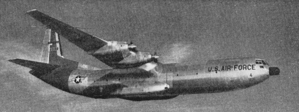 A huge airlifter with high-mounted wings powered by four 5,700-shp Pratt & Whitney T34-P-3 turboprop engines, the C-133 had its cargo-loading door in the rear fuselage. It was designed to carry heavier and bigger loads than the Lockheed C-130 Hercules, although its internal capacity did not represent a significant increase over the C-124 Globemaster II. First flown on 23 April 1956 and delivered to MATS on 1 August 1957, 35 C-l33As were followed by 15 C-l33Bs powered by 7,500 hp / 5,589kW T34-P-9W turboprops, the latter with an improved cargo door and increased payload. Some Cargomasters were used to transport the first generation of intercontinental ballistic missiles (ICBMs) and intermediate-range missiles such as Atlas, Thor and Redstone. Production ended in April 1961.