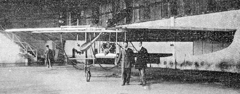 Construction of Papin and Rouilly’s Gyroptere began in February 1914 and was completed in June of the same year. The prototype was named Chrysalis (Chrysalide). Constructed of molded wood, the Gyroptere was well built with compound curves and a smooth sweep of its single, long, airfoil-shaped blade. The fabric-covered blade was hollow and approximately 19.5 ft (5.9 m) long and 4.4 ft (1.33 m) wide, giving it an area of 130 sq ft (12 sq m). The blade was counterbalanced by an 80 hp (60 kW), nine-cylinder Le Rhone rotary engine. The pilot occupied a nacelle between the blade and engine. The bottom of the nacelle included a structure to support the machine while it was on the ground or act as a float when on water.