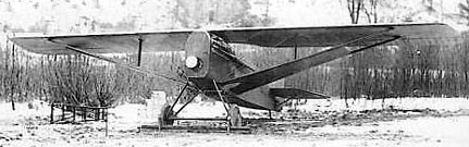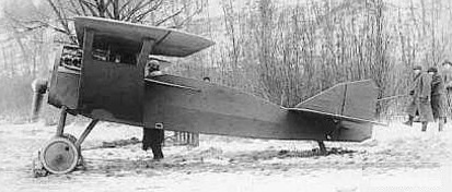 The Thomas-Morse MB-1 of 1918 featured faired lifting struts and parasol wing. Only one was built, and flown only once, as the landing gear proved to be too frail for its weight. It collapsed while taxiing out for another trial flight.