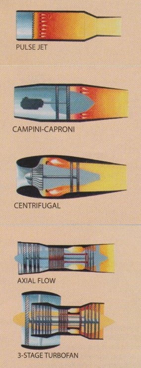 A jet engine having a turbine driven air compressor supplying compressed air to the combustion chamber.