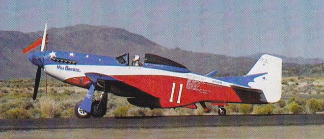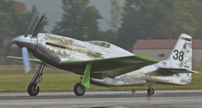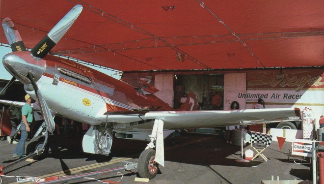 A P-51 Mustang-based racer, Surnthin’ Else belonged to World Airlines chief pilot John Crocker. Equipped with clipped wings and Hoerner wing tips, faired low-profile canopy and a Hovey machine products racing Merlin, this was one of the first Mustangs so modified. It was built up by Ken Burnstine, who was killed in another Mustang) and previously raced as Miss Foxy Lady.