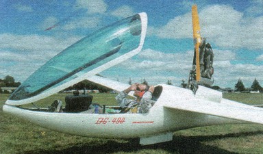 The DG-500 comes in a number of sizes which all share the same basic fuselage. The 500T Elan Trainer, which first flew in 1989 has an unflapped 18 m. wing without provision for water ballast; retractable gear is an option. The front cockpit design has been purposely made similar to that of the DG-300 Club. The higher performance versions (DG-500-22 Elan and DG-500 M) have a 22 m flapped wing and are, respectively, unpowered and self-launch models. The powered model (DG- 500M) has been liquid cooled Rotax powerplant on an electrically retracting pylon, digital engine instrumentation (DEI) and water ballast reduced to 100 kg 220 lb, and comes with an optional steerable nosewheel. The DEI, which has instrumentation in both cockpits, shows rpm, temperatures, pressures and fuel quantity as well as controlling the amount of fuel injected by the electronic fuel system. Engine retraction is automatic once the propeller has been stopped and centred. All 22m ships, which have a four piece wing, have retractable gear as standard. Performance of the 500M is similar to the 500/22 Elan, but empty and gross weights are 565 kg/ 1,246 lb and 825/1,819 lb respectively. All developed with 3 different sets of wingtips; 17.2 m for aerobatics, 18 m and (with winglets) 20 m. A flapped unpowered development of the DG-500/22 Elan. Known as the DG-500/20 Elan Winglets, has been designed for the German 20 m two-place contest class. This has the 750 kg/ 1,653 lb gross weight of the DG-500/22, and a wing loading of 45.0 kg/sq.m./ 9.22 lb/sq. ft. Manufacture of the DG-500 is partly by Elan in Slovenia.