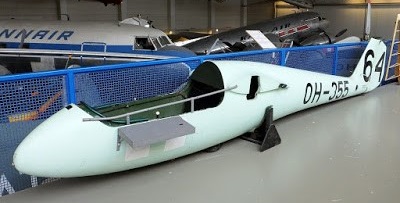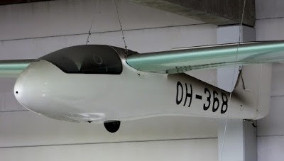 The wings are of triangular planform with aluminium tube leading edges and wire trailing edges, the whole being covered in polyethylene. They can be folded rearwards when not in use but are otherwise braced to the fuselage sides. The wing tips pivot about their leading edges to provide roll control. The tail is built as a single fin/tailplane unit pivoting only in the vertical plane for control in pitch.