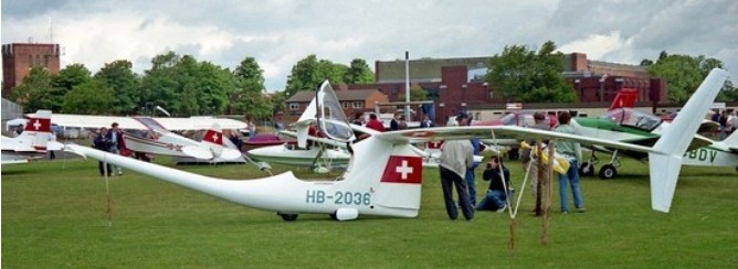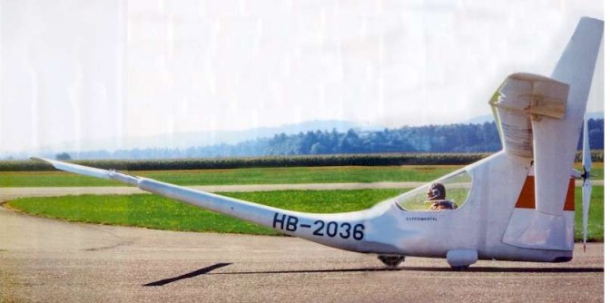 Hans U. Farner was a Swiss aircraft designer whose footlaunched canard ultralight sailplane had briefly reached production in 1966. In November 1974 he filed a patent for a novel control system, particularly suitable for canards. This suggested mounting the canard on a slender tube which slid snugly within a second long forward tube that, together with a pod containing an engine, pilot and bearing mainplanes, formed the fuselage.