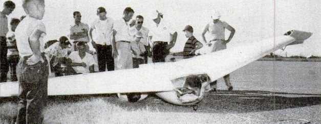 V-1 Crew: one Wingspan: 26 ft 0 in (7.92 m) Wing area: 90 sq ft (8.36 sq.m) Aspect ratio: 7.51:1 Airfoil: modified Northrop Empty weight: 175 lb (79 kg) Gross weight: 350 lb (159 kg) Maximum glide ratio: 36:1 Rate of sink: 120 ft/min (0.61 m/s) Wing loading: 3.89 lb/sq ft (19.0 kg/sq.m) Water Ballast: 0 No. Built: 1