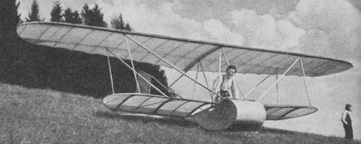 The 1933 wood and canvas Farner WF.8 single-seat parasol training glider was designed by Willi Farner & Hermann Aecherli.