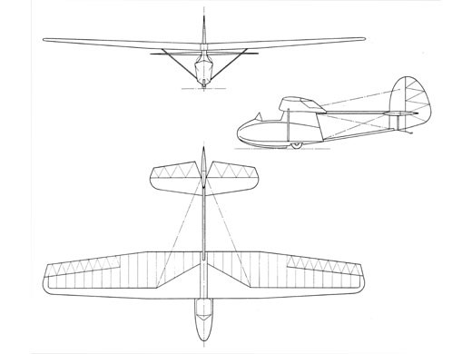 Built in parallel with CW III, completed 1929. Open frame glider with pilot’s nacelle.