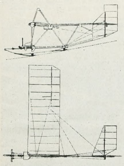 At the rear a broad fin occupied the gap between the upper and lower longerons and had a short, triangular extension above. An almost rectangular rudder ran upwards from the bottom of the fin, extending well above it. The tailplane, mounted on the upper longeron, was triangular in plan. It carried elevators which were rectangular apart from cut-outs for rudder movement.