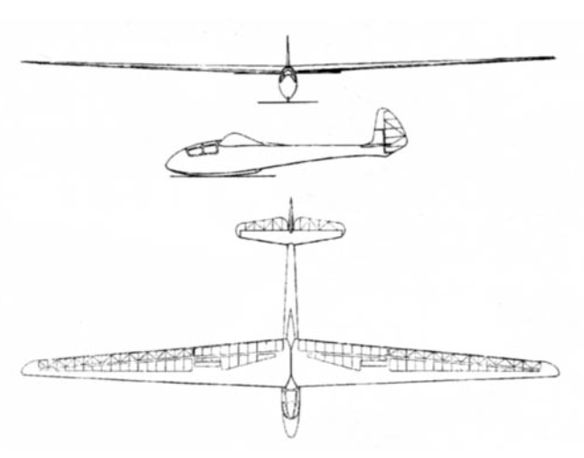 A 1948 2-seat wooden gull-winged sailplane, 18 m span