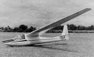 It is a semi-cantilever high wing monoplane with a small bracing strut each side for the singlespar wooden wing, which is covered partly with plywood and partly with fabric. The air brakes consist of two staggered rows of three semi-circular metal plates on each side of the wing just outboard of the bracing strut; these rotate on their axes to protrude above and below the wing surface or to be withdrawn into the wing section. No flaps are fitted, And the oval-section fuselage is of all-wood construction with the pilot sitting under a small canopy. The landing gear consists of a fixed monowheel with a sprung nose-skid and a tailskid, and the tail unit is also of wooden construction.
