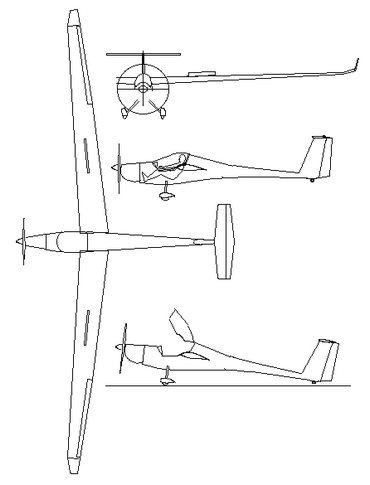 Two seat motorglider, side-by-side, with Rotax 582 engine in tractor configuration and nose wheel undercarriage. JAR 22 certified, and first flown in 1996.