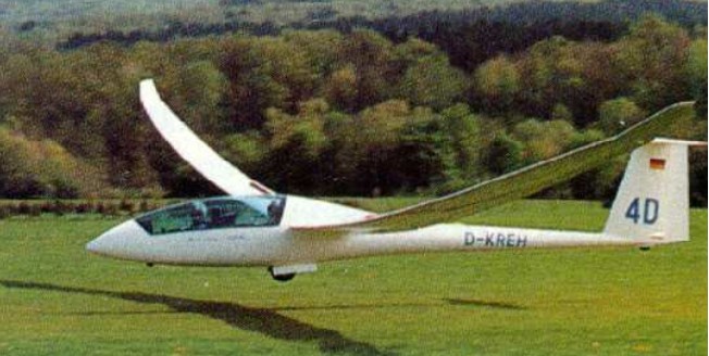 The GRP /Dural air brakes with springy cover plates are in the inner wing, so that separate attaching is not necessary when the assembling of the outerwing. The wings consist of a KFK box spar in the interior and a KFK double T cross-beam in the outerwing. The curving flaps and ailerons are manufactured in KFK /Kevlar building method. The spar boom is about 42% depth of profile directly under the reinforced outer skin of the wing, in order to obtain the highest possible flexural rigidity for a slim, thin and long wing.