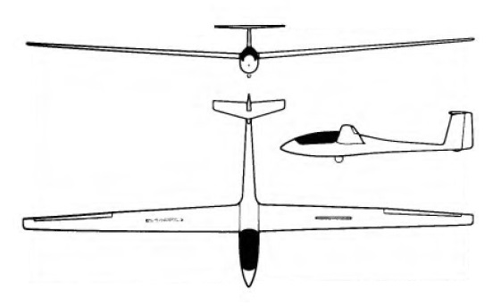 The HS 3 Nimbus is a high performance Open Class sailplane, and was designed by Dipl Ing Klaus Holighaus and first flew in January 1969. Construction is almost entirely of glass fibre, with a foam sandwich structure for the wings and tail unit. A single-seat midwing monoplane in carbon fibre, the four or six-part wing, has flaps, and air brake. Separate water tanks are in the outer and inner wing panels.