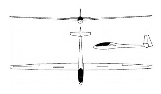 The Nimbus 3 makes extensive use of carbon-fibre in its structure, only the forward fuselage being of glassfibre. The three part ailerons droop in conjunction with the flaps, and over 80 gallons of water ballast can be carried. The Nimbus 3 is probably the first sailplane to achieve a glide angle of better than 1 in 50, a figure of 55:1 being claimed, and Mk 3s took the first three Open Class places in the 1981 World Gliding Championships.