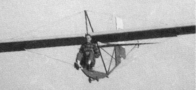 The initial use of the rudder induces a skid, quickly followed by banking of the wing. Generally, the control feel is quick and stable, and the controls function just as well as on any of the three axis airchairs. There are special two axis procedures, such as keeping the nose low while ground rolling in a cross wind, so the weight of the glider on the wheels will keep the wings level.