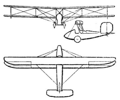 The wing trunk was located above the fuselage. The upper flange had an offset of 0.3 meters and the distance between both planes was 0.9 meters, being joined by means of parallel uprights and braced by cables. The wing construction was also made of wood, with textile covering and corresponded to the Prandtl-387 profile. Roll control was carried out by ailerons located in both planes.
