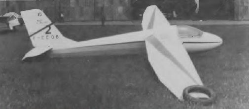 The cantilever wooden shoulder wings have single spars and the wooden ailerons are each in two parts operated differentially; there are perforated wooden air brakes above and below each wing, and small end-plate ‘bumper’-type fairings at the wing tips. The welded steel tube fuselage framework is now in two portions, the forward section having four longerons and the rear part only three, both sections being differently covered to those of the Javelot. The cantilever tail unit is of wood, with a trim tab in the one-piece elevator. Landing gear consists of a rubber-sprung nose skid with a non-retractable monowheel mounted aft of it; this has a brake linked to the wing air brake control, and there is also a rubber-sprung tailskid. The pilot sits in a canvas seat and there is provision for radio and oxygen.