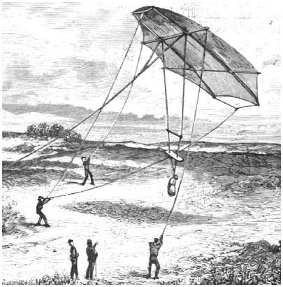 The machine was to be launched from a cliff on the coast, and glide into the wind until fairly low over the sea. During a gust the pilot would pull back the stick, and if necessary shift his seat back so as to bring the tail down quickly. As a gust dies down he would push the stick forward and slide his seat forward at the same time so as to avoid stalling the machine. During a lull it was to be the pilot’s endeavor to glide forward with the minimum loss of height, i.e., at the best gliding angle for the particular conditions. Dr. Magnan considered that another method would be to glide down-wind during the lulls and up-wind during the gusts, but that it was doubtful if the machine could be manoeuvred quickly enough to make this form of gust-soaring feasible.