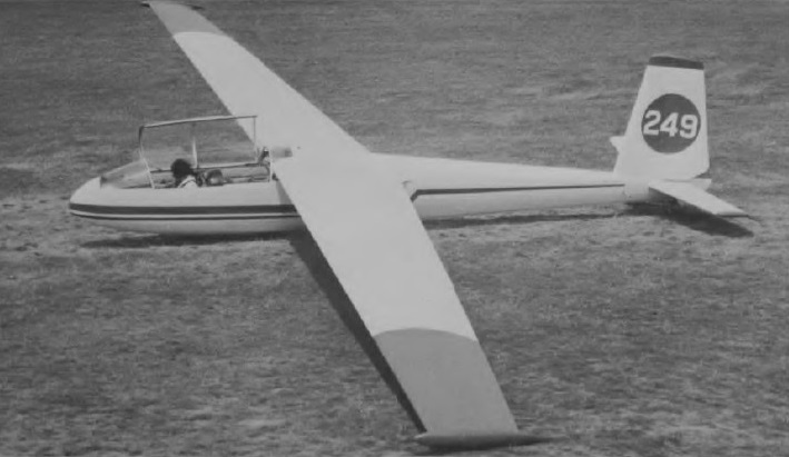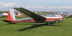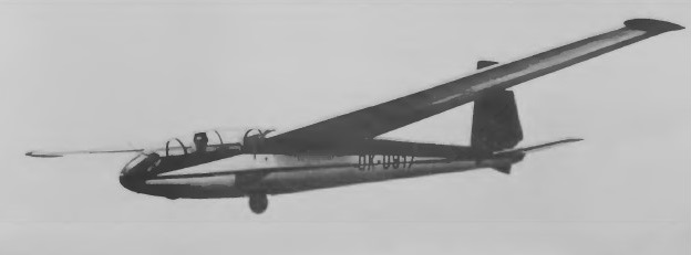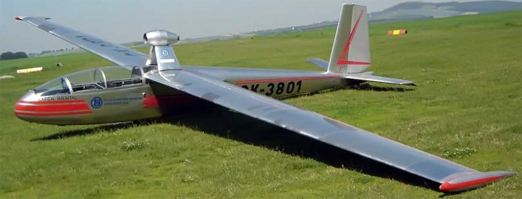 Designed by Karel Dlouhy as a two-place training and club aircraft. The cantilever shoulder wings are characterised by a moderate aspect ratio (13.7) and 5° forward sweep at the quarter-chord line; wing tip ‘salmon’ fairings are fitted. The wings are all-metal two-spar structures, the main spar forming a torsion box with the leading edge, and each wing is secured by three fuselage attachments. The metal ailerons and slotted area increasing flaps are fabric-covered, and there are light alloy DFS-type air brakes above and below the wings. The all-metal fuselage is a semi-monocoque of oval cross-section built in two halves riveted together in the vertical plane, with riveted skin, and the cantilever all-metal tail unit has fabric-covered elevators and rudder, with a controllable trim tab in each elevator. The horizontal tail surfaces fold upwards parallel to the rudder for transport. The landing gear consists of a partially retractable monowheel, with an oleo-pneumatic shock absorber and mechanical brake. The two pilots sit in tandem in a partlyupholstered cockpit with heat-insulated walls, under a sideways-opening canopy hinged to starboard which is jettisonable in flight. Optional ‘extras’ include, amongst other things, electric gyros, navigation lights, radio, a battery and rear compartment blinds for instrument flying instruction, while more unusual ‘extras’ are a water ballast system to increase the wing loading for solo flight and skis for operation on snow.