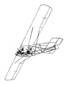 The glider was a biplane, but the upper wing was only the front half of the circle. Elevators behind the wing were also operated differentially for roll control and a fin and rudder were added later. The pilot’s seat was in the hole, and the breeze.