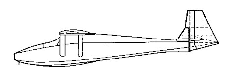 The Bekas, which first flew in 1968, was a development of an earlier, 1959, design of Stefan Brochocki, the BKB-1. The design of the Bekas 1-A had three main aims : a higher L/D (archieved by using a greater span and aspect ratio), easier ground handling and rigging and a flexible wing to study the effect of bending on stability and controllability. It has a fixed gear and trailing- edge control surfaces on the out-board portion of the wing which serve a dual role of elevator and aileron.