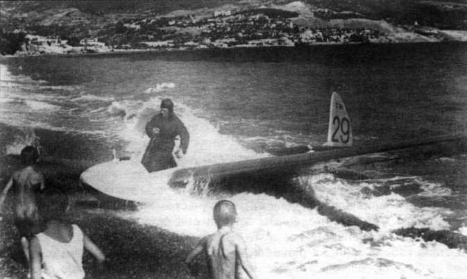 A little later pilot N. Baruzdin made a takeoff from the sea towed by a Shavrov Sh-21Sh-2. This flight would cover the Koktebel – Gurzuf in Yalta.