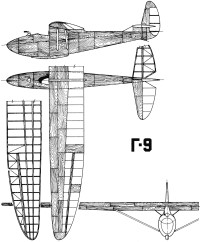 The Gribovski G-9 (Russian: Грибовский Г-9) was designed as a single-seater glider with a braced high wing, specially prepared for aero-tow.