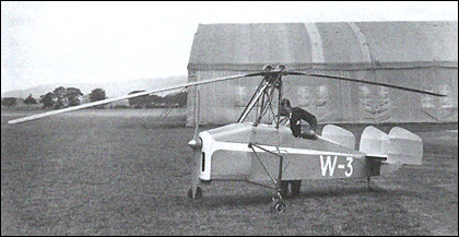 This single-seater was powered by an inverted 4-cylinder in-line engine and fitted with a two-bladed ‘auto-dynamic’ rotor. It could make a ‘jump take-off’: to do this, the rotor was run at overspeed in flat pitch then suddenly given sufficient positive pitch to produce the jump while the engine was declutched. The W.3 was publicly displayed at Hounslow Heath on 23rd July 1936.