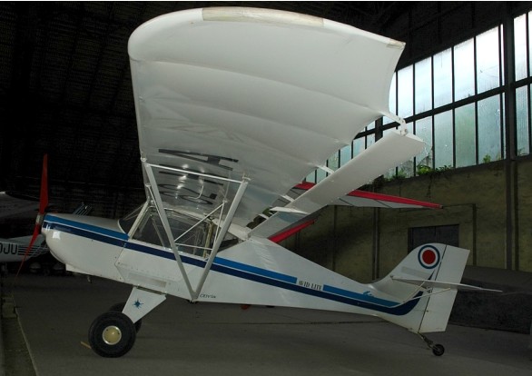 Designed by Dean Wilson and introduced at Oshkosh ’83 with a gear reduction Cuyuna, the Avid Flyer is an easy-to-build kit taildrag¬ger or trike gear high-wing monoplane, with wings that fold for towing. Front wing spar pins are removable, and the rear spar and the bottom of the struts are on the same vertical line, so after quick removal of a light sheet metal centre section cover, all that’s necessary is the pulling of two pins and both wings pivot aft, without disconnecting any controls, to sit alongside the fuselage. In this condition it is narrow enough to be towed and, since the gear is based on bike wheels and brakes, it takes nothing more than a steel bar that clamps the bottom of the tail to a rear bumper, as it rolls on its own wheels.