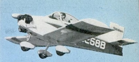 A high-wing, wire-braced monoplane with “bathtub” type fuselage/cockpit and conventional tail sur¬faces. A discreet three-axis control system is operated by stick and rudder pedals. Aluminum tubing and wooden dowels are used in combination with styrofoam for ribs and fuselage pod structure. Wing and tail surfaces are covered with doped fabric. Openings in the floor of the cockpit allow for foot-launching. The engine and tail structure are at¬tached to opposite ends of a single aluminum-tube boom. POWERPLANT: Chotia 460 mounted in tractor position ahead of the main wing. The Weedhopper two-blade, wooden propeller is turned by direct drive. Fuel is carried in a polyethylene tank inside the fuselage. The single-cylinder engine is hand-propped for starting and has a compression ratio of 10:1. LANDING GEAR: Conventional taildragger type with a steerable tailwheel attached to the rudder. Main wheels are 20-inch and the tailwheel is 6-inch. There are no brakes, and the main gear are solid mounted.