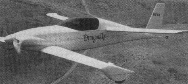 Designed by Robert J. Walters and winner of the Outstanding New Design Award at Oshkosh 1980, the Dragonfly is another canard-configured composite homebuilt in the same vein as the Quickie and VariEze. First flying on 16 June 1980 (N5WN) with two-place side-by-side seating under a bubble canopy, the Dragonfly is powered by a 56 hp 1600cc HAPI/VW engine. The intention of the aircraft is to provide builders with a project that is inexpensive to build and also inexpensive to operate on a readily available engine. The wing and canard are built as a single piece in a jig and the job can be accomplished in a normal two-car garage. The cockpit width is 43 inches, like that of a Cessna 172. A molded canopy was selected to avoid the soapbubble effect of a free-blown canopy. A typical 140-mph cruise burns gas at the rate of 45 mpg. The propeller used is a Great American, with a 40-inch pitch and 52-inch diameter.