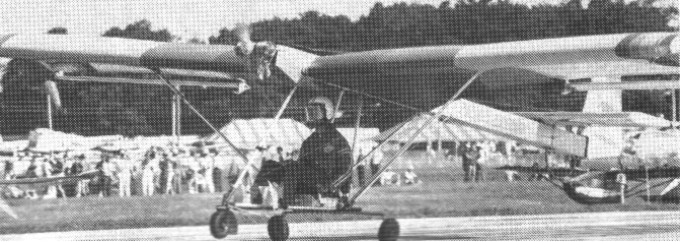 Single seat single engined high wing mono¬plane with conventional three axis control. Wing has unswept leading edge, swept for¬ward trailing edge and tapering chord; con¬ventional tail. Pitch control by fully flying tail; yaw control by fully flying rudder; roll control by half span ailerons; control inputs through stick for pitch/roll and pedals for yaw. Wing braced from below by struts; wing profile double surface. Undercarriage has three wheels in tricycle formation; glass fibre sus¬pension. Push right go right nosewheel steer¬ing connected to yaw control. Aluminium tube and sheet framework, with optional total enclosure pod. Engine mounted at wing height driving tractor propeller. All aluminium and hardware is of aircraft quality. The Zipper is a conventional three axis machine with rudder pedals and centre stick, and it appears to be quite conventional in its choice of materials, being basically a tube and Dacron machine. There are some interesting features though, such as the tail boom, which is not tubular but is constructed of sheet aluminium alloy formed into a rectangular cross section. Most of the innovation, however, is centred on the wing design, which has an unusual shape plan, with ailerons attached to the trailing edges. The design allows the wing to be folded in two minutes, the maker claims, after which the aircraft can be towed on its own wheels, avoiding the expense of a trailer. Engine is the direct drive JPX PUL425, which is available in two states of tune 22 hp standard or 26hp with tuned exhaust. The aircraft is sold in kit form, but Zenair says the kit takes only an afternoon to complete, having already been test assembled in the factory before shipping. Other options include floats and wheel spats, while an enclosed cockpit, skis and propeller spinner are also offered.