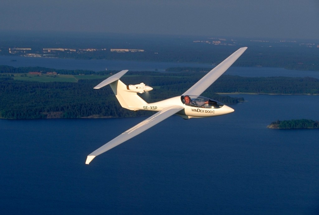Windex 1200 C is primarily a high-performance sailplane, but has a low-drag fin-mounted engine installation and a variable-pitch propeller turning it into an efficient touring aircraft with a cruising speed of 210 km/h (130 mph) and self-launching capability. The airframe of Windex 1200 C is stressed for aerobatic manoeuvres and designed to JAR 22 (A). It’s a powered high-performance sailplane that can be easily handled on the ground by one person. Even with engine nacelle, propeller and a 20% smaller span it has a soaring performance equal to or better then a 15-metre Standard Cirrus glider. It also has a climb rate of approximately 2.5 metre/sec (685 fpm), under power. The specially designed 17% thick airfoil section has comparatively low drag and a wide low drag bucket that is further expanded by a 22.5% chord trailing edge flap. The basic airfoil has very docile stall characteristics in both smooth and rough condition. The carbon fibre spar has been successfully proof tested at 2175 kgs each side. That gives a useable load factor of +9 g and -7 g (with added safety factor of x 1.725). The König SC-430 3-cylinder engine, used in the Windex 1200C is manufactured in Canada. A displacement of 430 cc gives a take off power of 20 hp at 4200 rpm. Weight of the König engine is 13.8 kg (30.4 lbs). Starting is electric and it uses gasoline of types 100LL, 80UL and mogas98. The variable-pitch propeller unit for the König engine has been built and successfully tested to JAR 22 standards. The pilot control pitch from the cockpit, fine pitch to fully feathered. The JAR tests include 50 hours running and 500 control movements with engine running. After that the propeller unit is dismantled, searched for damage, tolerances checked and finally function checked again. The unit has come through bench testing without problems.