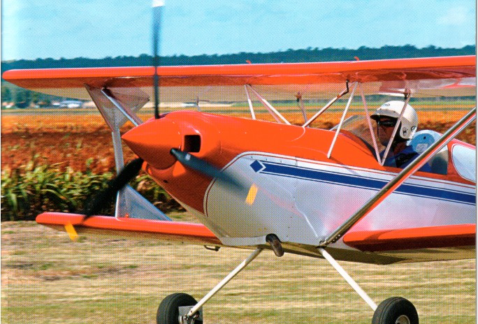 The Sportsman is the latest release from Col Winton on the Gold Coast who has been designing and building ultralights over the last nine years. The mid wing pusher comes either in kit form with or without the engine or complete and ready to fly. The sleek fibreglass body can be removed for maintenance or for those who like that airy feel, and the cantilevered mid wing unbolts for trailering a channel section aluminium boom supports the tail “feathers”. This aircraft can use a Rotax engine in lieu of the VW unit.