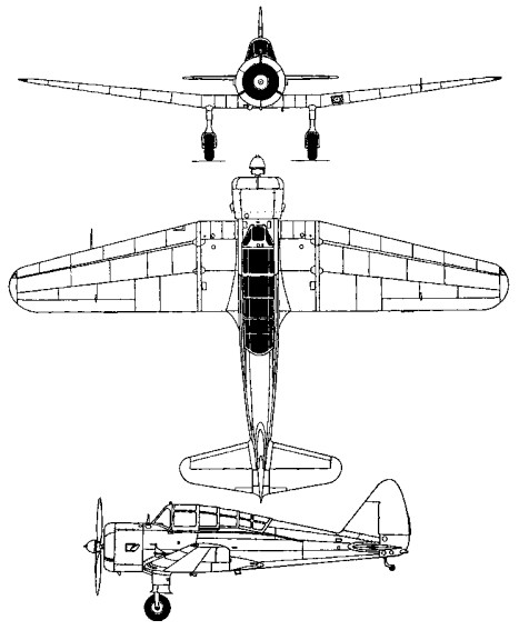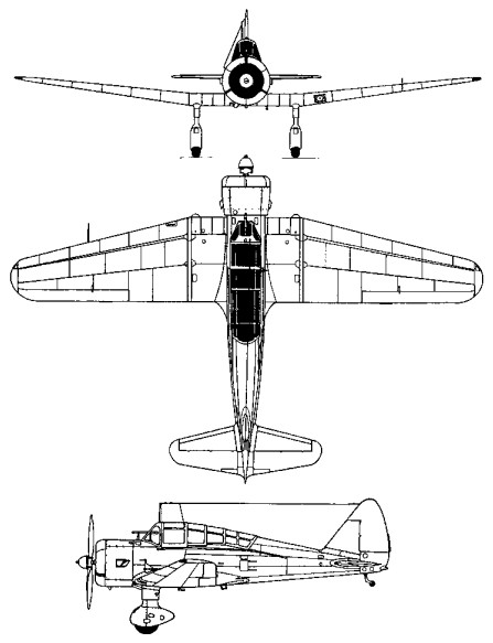 The first of two prototypes was flown in July 1935 powered by a 150 hp Hitachi Ha 12 seven¬ cylinder radial engine driving a two blade propeller. Trials were successful and the only major change made to subsequent production aircraft was the deletion of the upperwing ailerons to eliminate oversensitive control inputs.