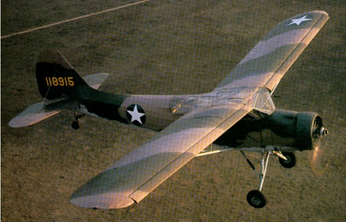 The 1940 L-1 Vigilant liaison aircraft is the military variant of the Stinson model V-74. The prototype L-1 with full-span automatic slots and slotted flaps for Army evaluation first flew on 15 July 1940, piloted by Al Schramm. It operated in and out of a 200′ circle.