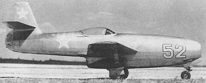 Engine: one 3,505-lb (1,590-kg) thrust RD-500 turbojet Wing span 28 ft 7.75 in (8.37 m) Length 26 ft 7.75 in (8.12 m) Wing area 145.32 sq ft (13.50 sq.m) Height: 10.827 ft / 3.31 m Empty weight 4,409 lb (2,000 kg) Maximum take-off weight 7,460 lb (3,384 kg) Maximum speed 606 mph (975 kph) Initial climb rate 9,252 ft (2,820 m) per minute Service ceiling 48,555 ft (14,800 m) Range 746 miles (1,200 km) Armament: two 23-mm cannon Bombload two 132-lb (60-kg) Crew: 1