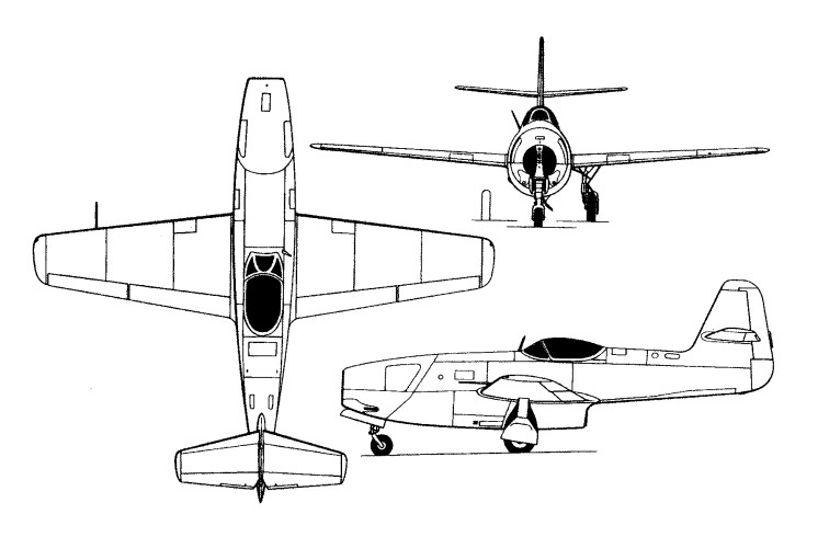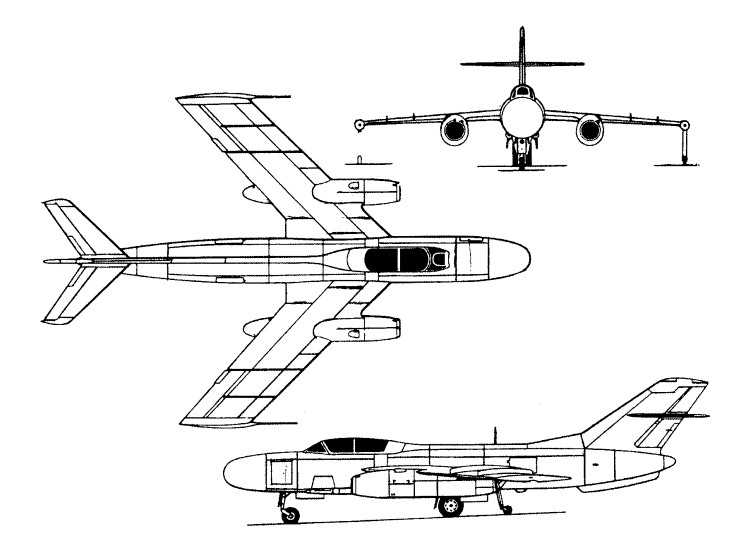 This type resulted from an October 1946 requirement, and as one of the bureau’s first all-metal stressed-skin designs was based on a “stepped” fuselage with the RD-500 engine (in essence a British unit, the Rolls-Royce Derwent V centrifugal-flow turbojet, built in the USSR) located in the forward fuselage and ex¬hausting below the fuselage in line with the cockpit and trailing edges of the unswept wing. This kept the engine installation as short as possible, and so avoided the efficiency losses associated with a long jetpipe. The Yak-23 possessed wing and horizontal tail surfaces similar to those of the Yak-19, and was intended to fulfil a requirement for a lightweight day interceptor capable of operating from existing fields. The first of three prototypes of the Yak-23, which were of all-metal stressed-skin construction and powered by imported Rolls-Royce Derwent turbojets, was flown on 17 June 1947. Seen as something of a back-up for the very much more advanced Nene-engined fighters with wing sweep-back then under development, the Yak-23 proved itself an outstandingly agile warplane. NATO code name Flora. Manufacturer’s trials were completed on 12 September 1947. State Acceptance testing had been successfully completed before the year’s end and series production began in the late spring of 1948. The series Yak-23 was powered by a Soviet copy of the Derwent known as the RD-500 – a designation derived from GAZ-500, the factory in which the engine was produced – and rated at 1590kg. Its armament consisted of two 23mm NS-23 (later NR-23) cannon. Deliveries to the V-VS began early in 1949, by which time the first production examples of the MiG-15 had already flown. In consequence, only two V-VS regiments reportedly re-equipped (from the Yak-17) with the Yak-23, which was quickly released for export. Twelve were delivered to Czechoslovakia during 1950 (and there assigned the designation S101) and the supply of some 95 to Poland began late that year, while, in 1951, 12 each were delivered to Romania and Bulgaria. Both Czechoslovakia and Poland were to have licence-built the Yak-23 but, in the event, manufactured the MiG-15, and Soviet production of the Yakolev type terminated in 1950 with 310 built.