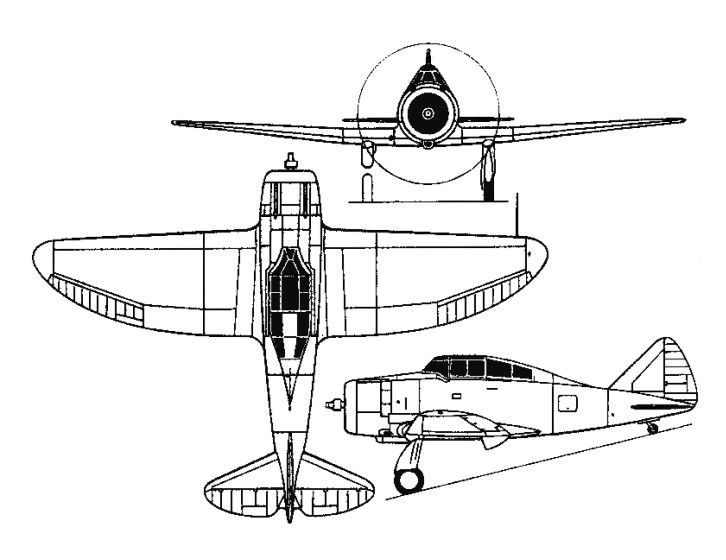 P-35A Wingspan: 10.97 m / 36 ft 0 in Length: 8.18 m / 27 ft 10 in Height: 2.97 m / 10 ft 9 in Wing area: 20.44 sq.m / 220.01 sq ft Max take-off weight: 3050 kg / 6724 lb Empty weight: 2075 kg / 4575 lb Max. speed: 499 km/h / 310 mph Ceiling: 9570 m / 31400 ft Range: 1529 km / 950 miles Armament: 2 x 12.7mm + 2 x 7.62mm machine guns Bomb load: 160kg