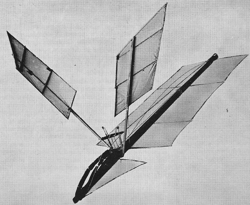 He built many models, usually of a small size and of simple construction. At first he concentrated on designing and testing model aeroplanes that were propelled by flapping wings. In 1890, he constructed a flapping wing model driven by compressed air that flew 112m. That model is now in the Museum of Applied Arts and Sciences in Sydney, Australia.