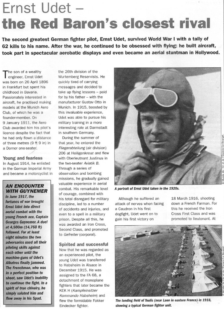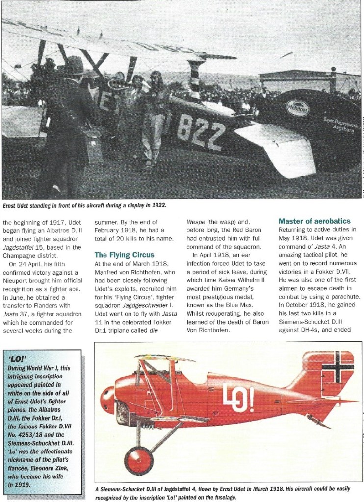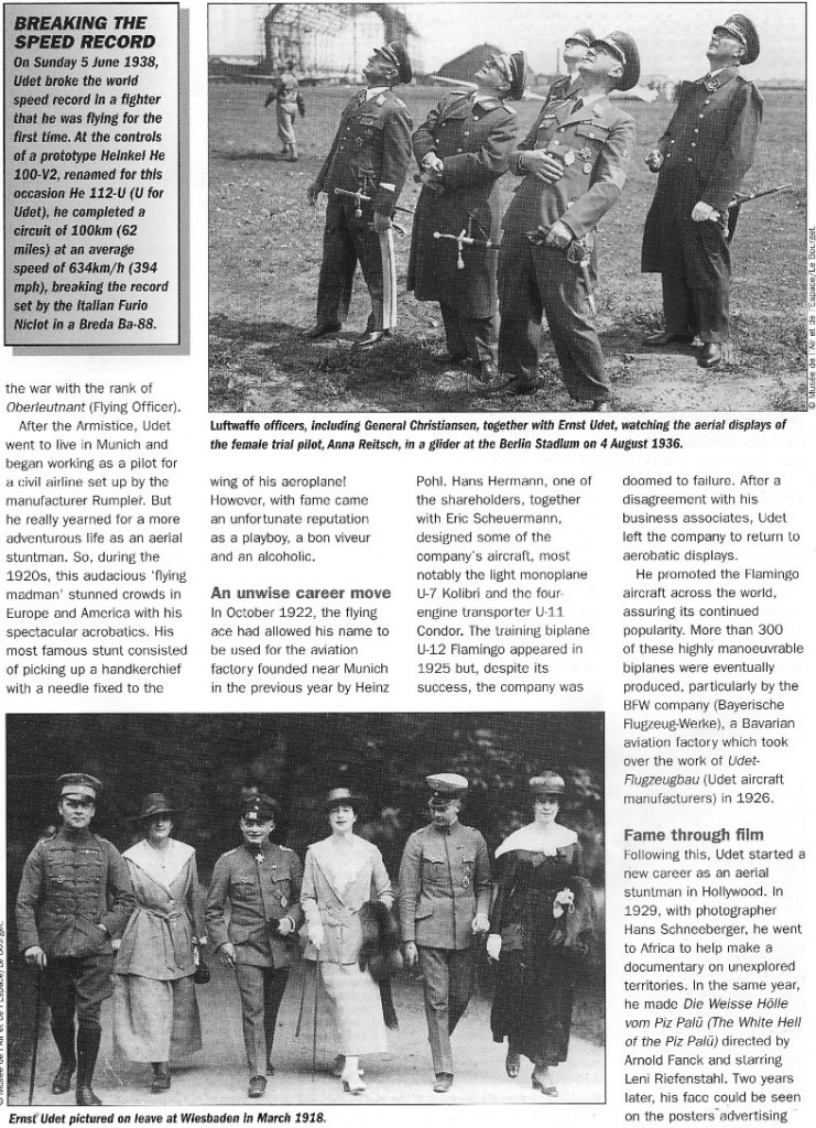 After the war Udet appeared with Leni Riefenstahl in the film SOS Eisberg. He was also active in the Richthofen Veterans’ Association and caused great controversy when he campaigned to have Hermann Goering rejected for for making false claims of air victories during the First World War.