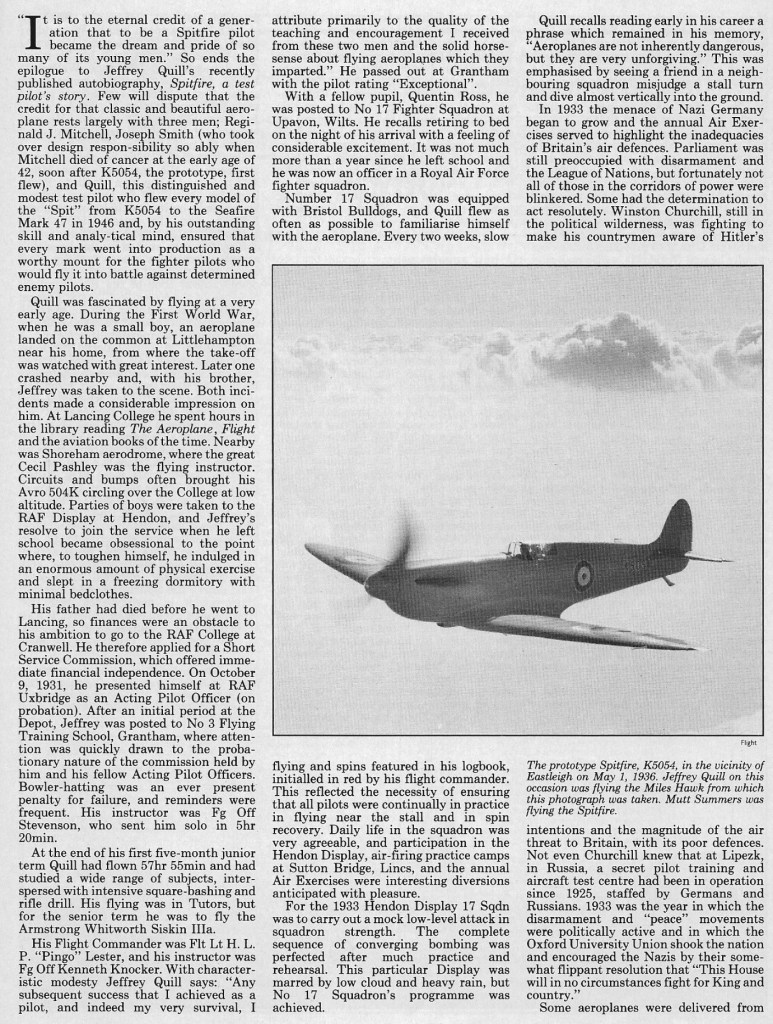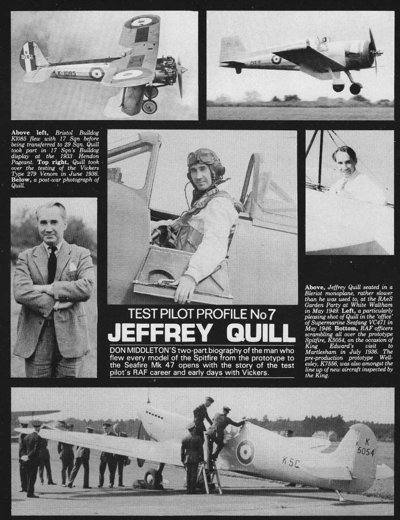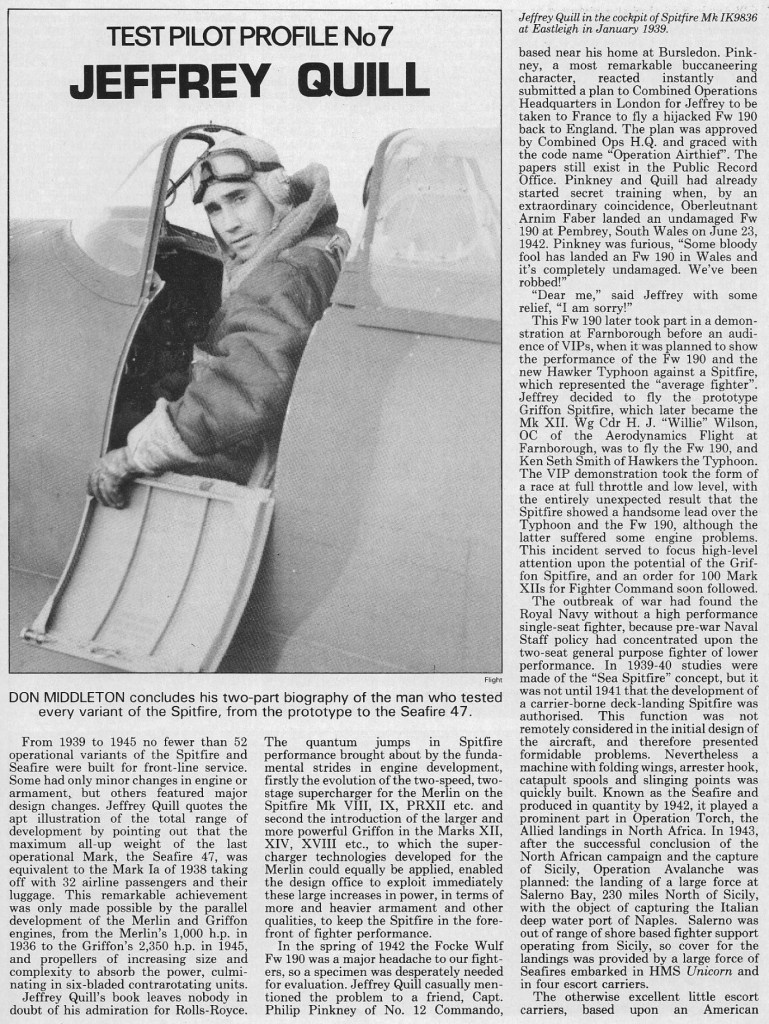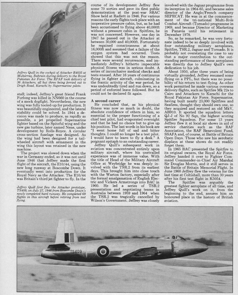 On 20 February 1996, Jeffery Quill, the second pilot to fly the Spitfire prototype, died in his sleep.